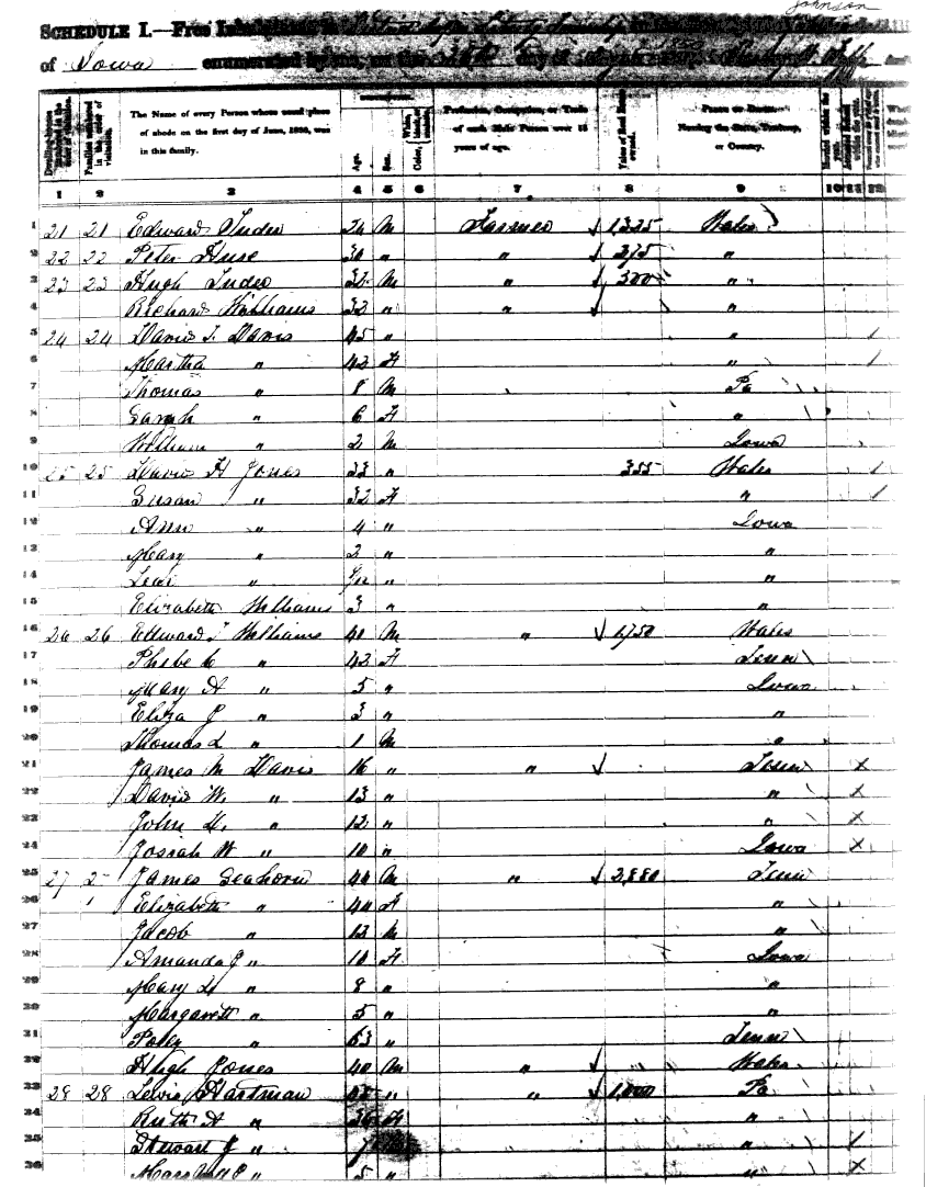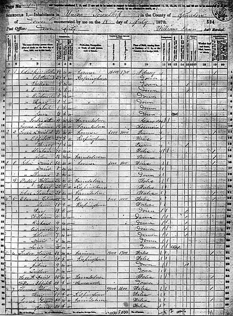 A couple of interesting bits of information can be gleaned by looking at the 1850 census of Union Township. After Jane (Tudor) Williams