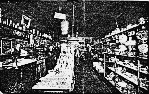 | This interior view of the old store shows D. Milton Jones and Mr. Evans at left; L. K.