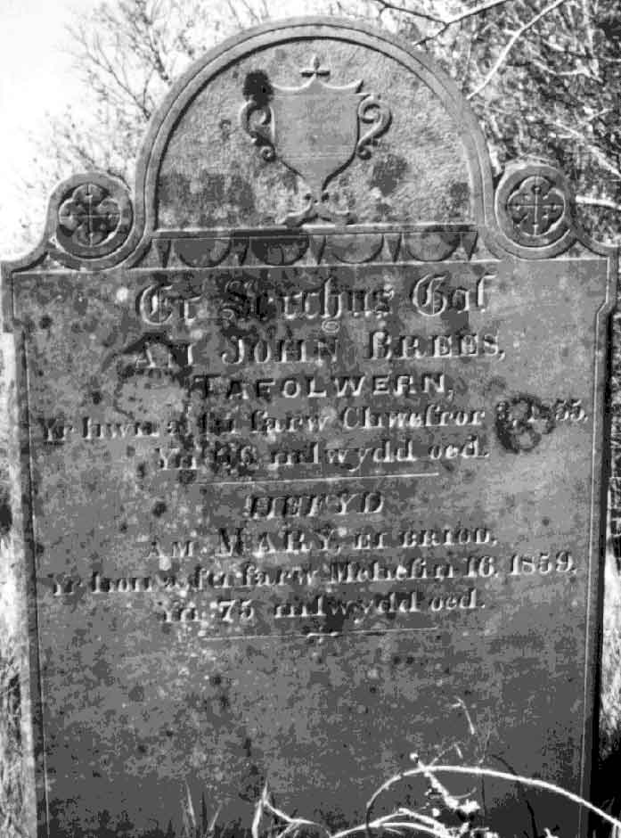 The gravemarker of John BREES and his wife Mary (EDWARDS) at the chapel at Hen Gapel