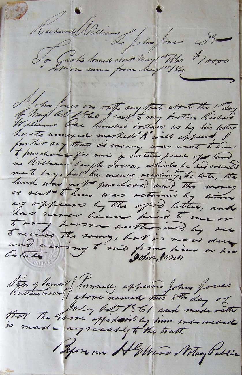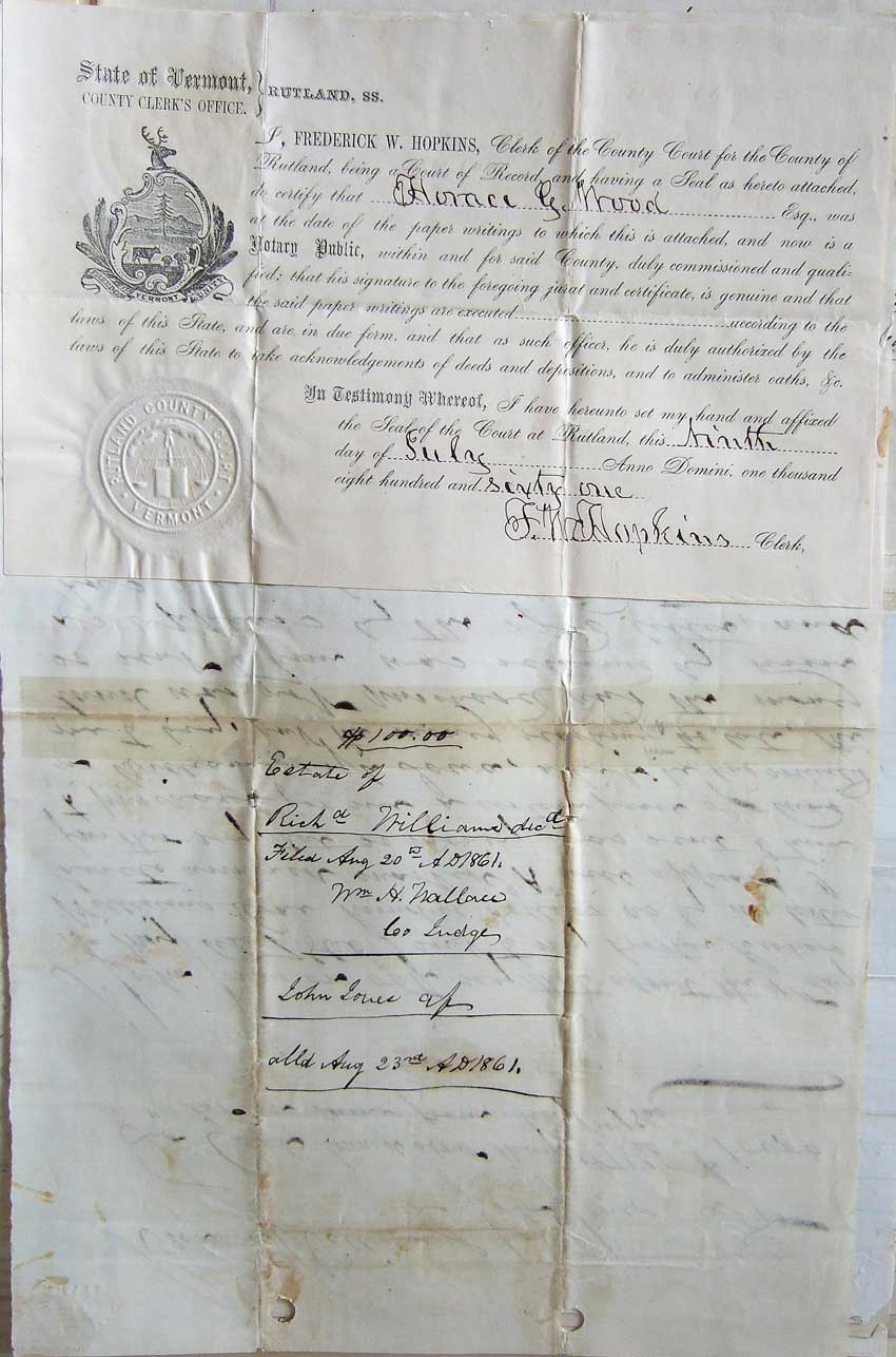 [Seal: "Rutland County Court, Vermont"]