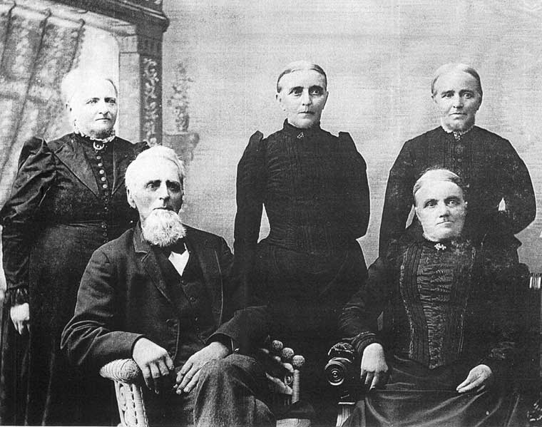 Mary Jane Thomas Buck, Emma Thomas Carson, Elizabeth Thomas Davis Bottom Row: Seated